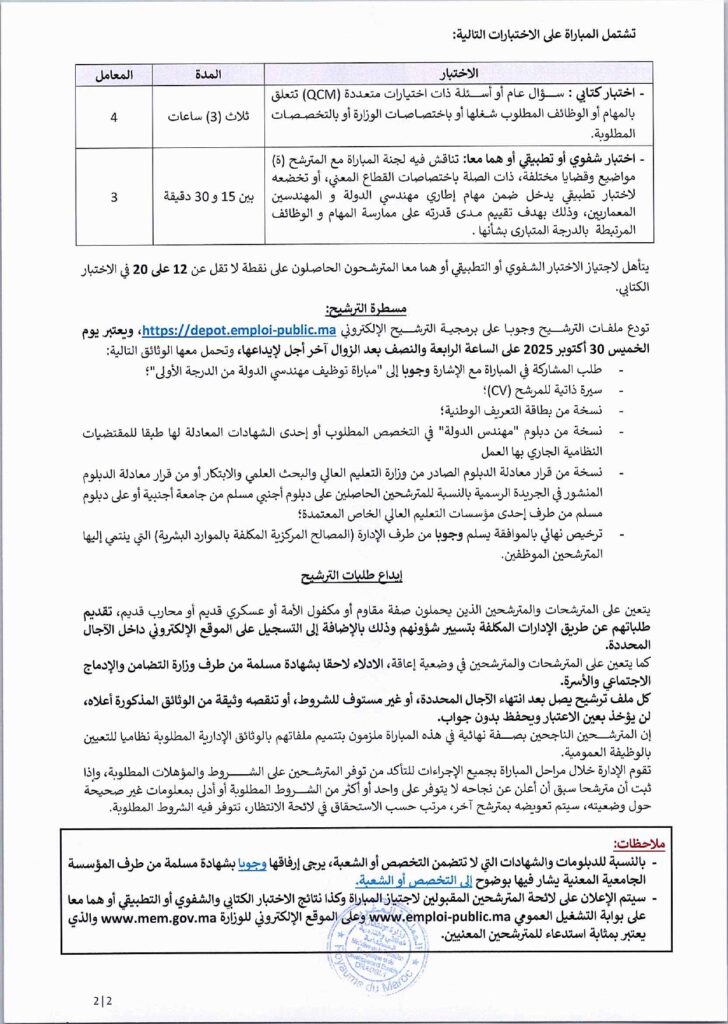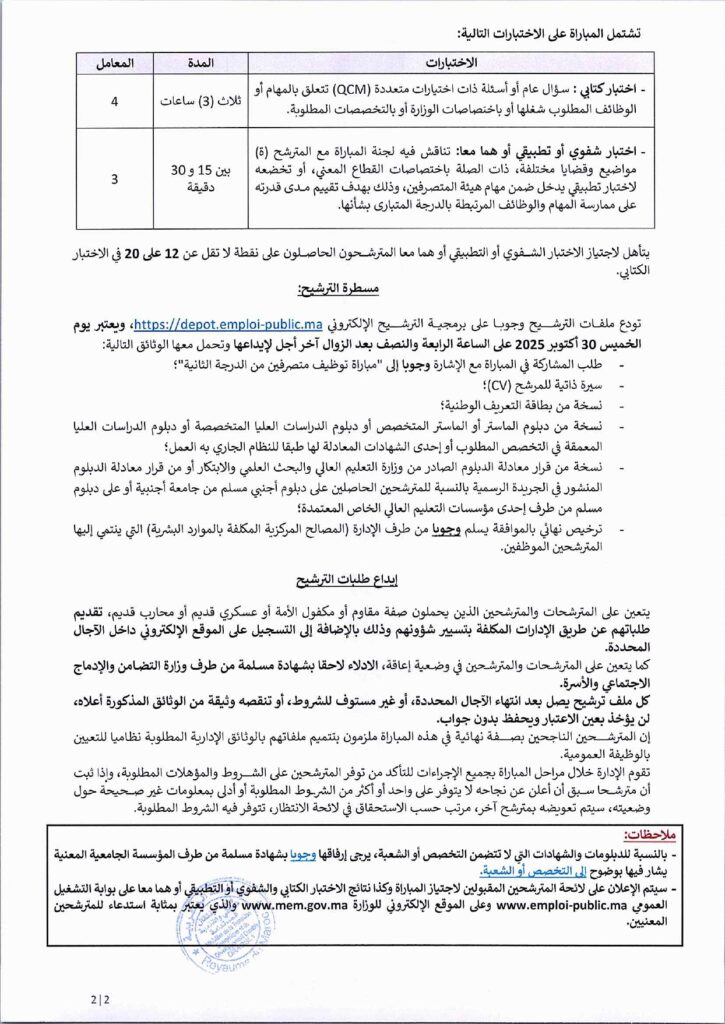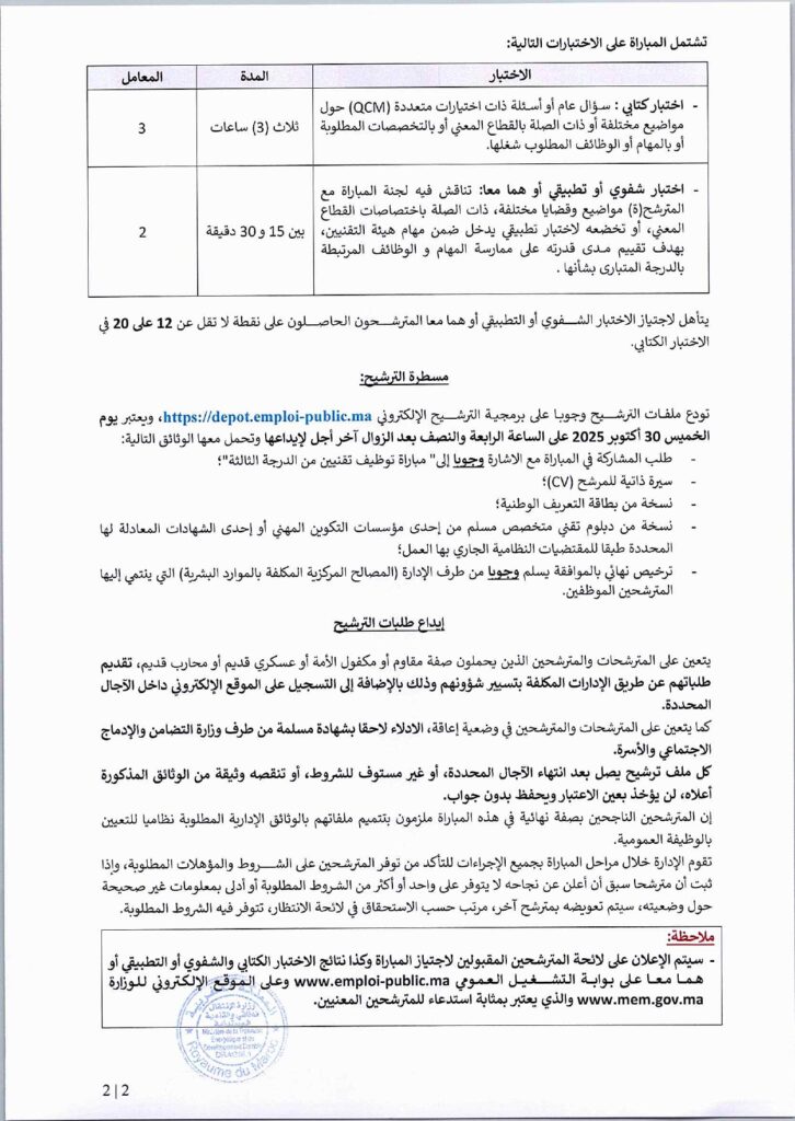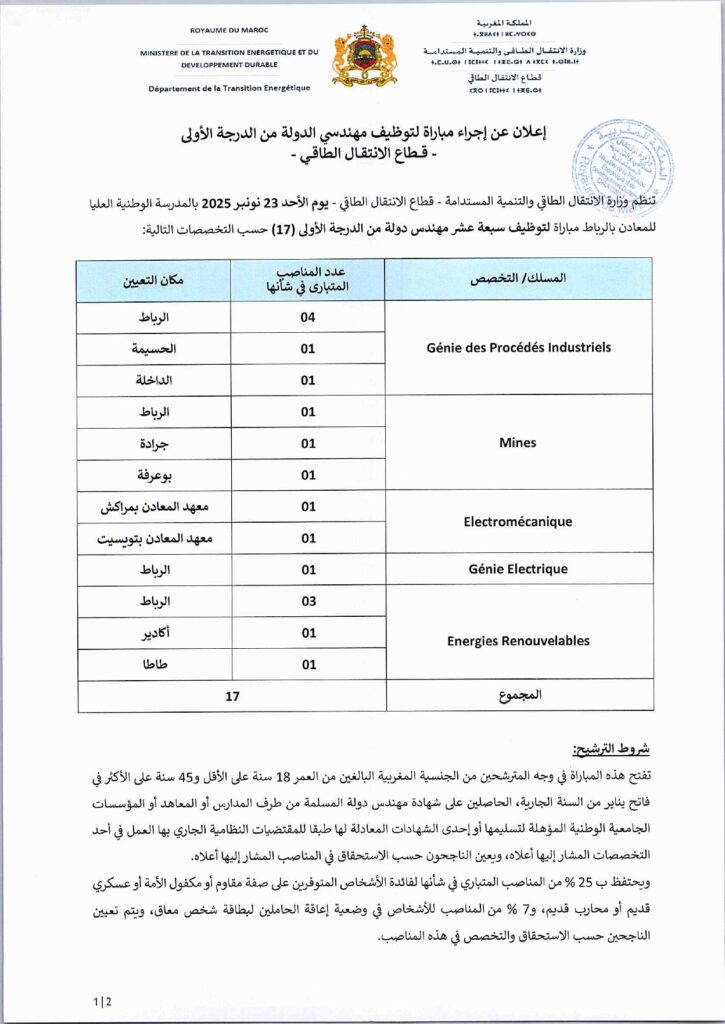 🔗 تحميل إعلان مباراة وزارة الانتقال الطاقي 2025