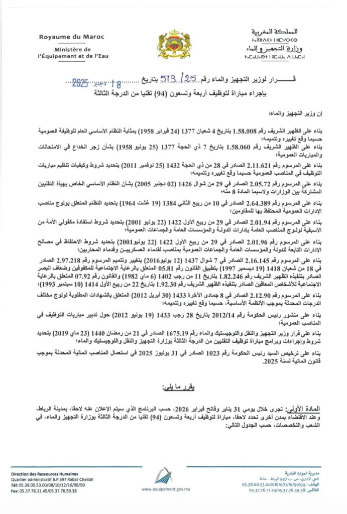 - 📄 إعلان مباراة توظيف 94 تقنياً من الدرجة الثالثة