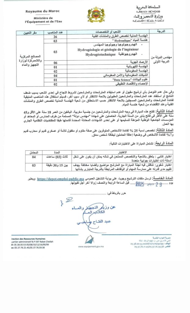 مباراة توظيف 142 منصباً بوزارة التجهيز والماء 2026